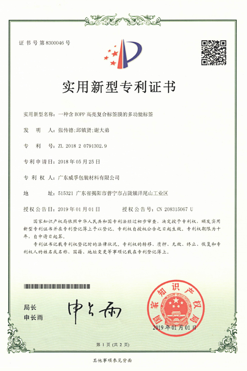 Weifu films cover BOPP, CPP, BOPE, CPE, metallised film, woven sacks, and other series products. Weifu films have been exported to Europe, Germany, Japan, South America, SEA, and other over 20 countries and regions.